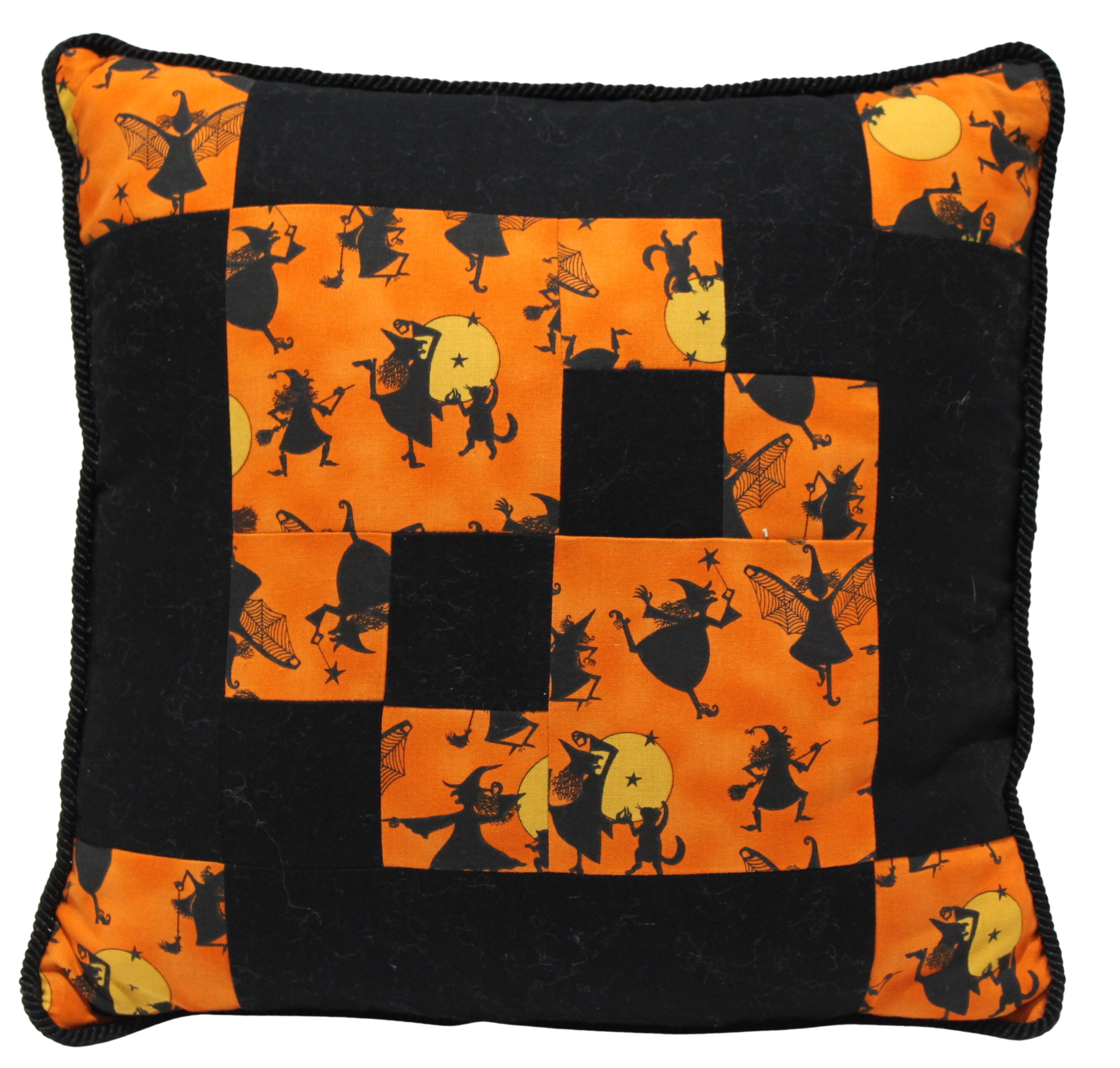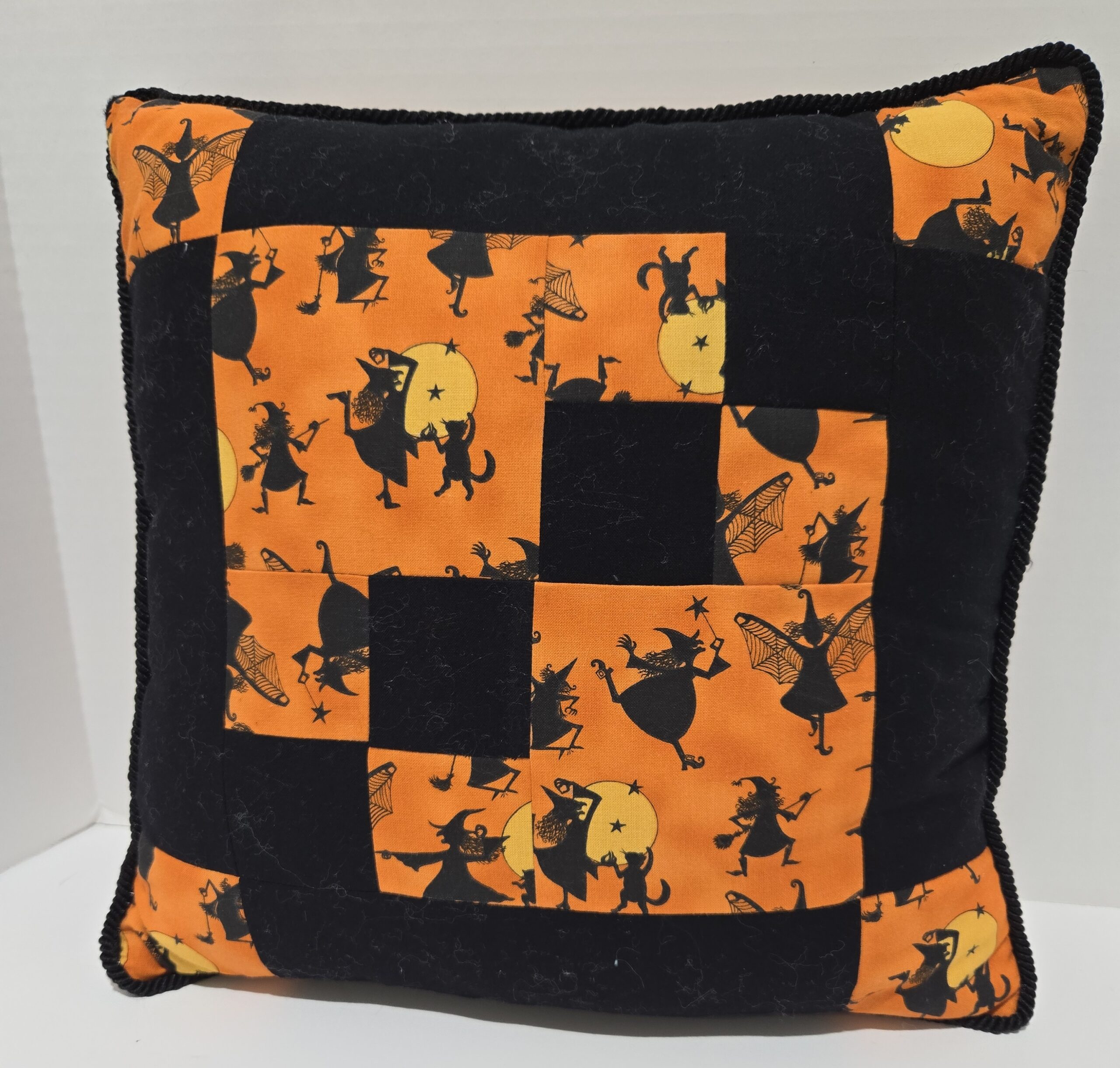 This is a homemade Halloween patchwork pillow would look really nice on your sofa in your living room!