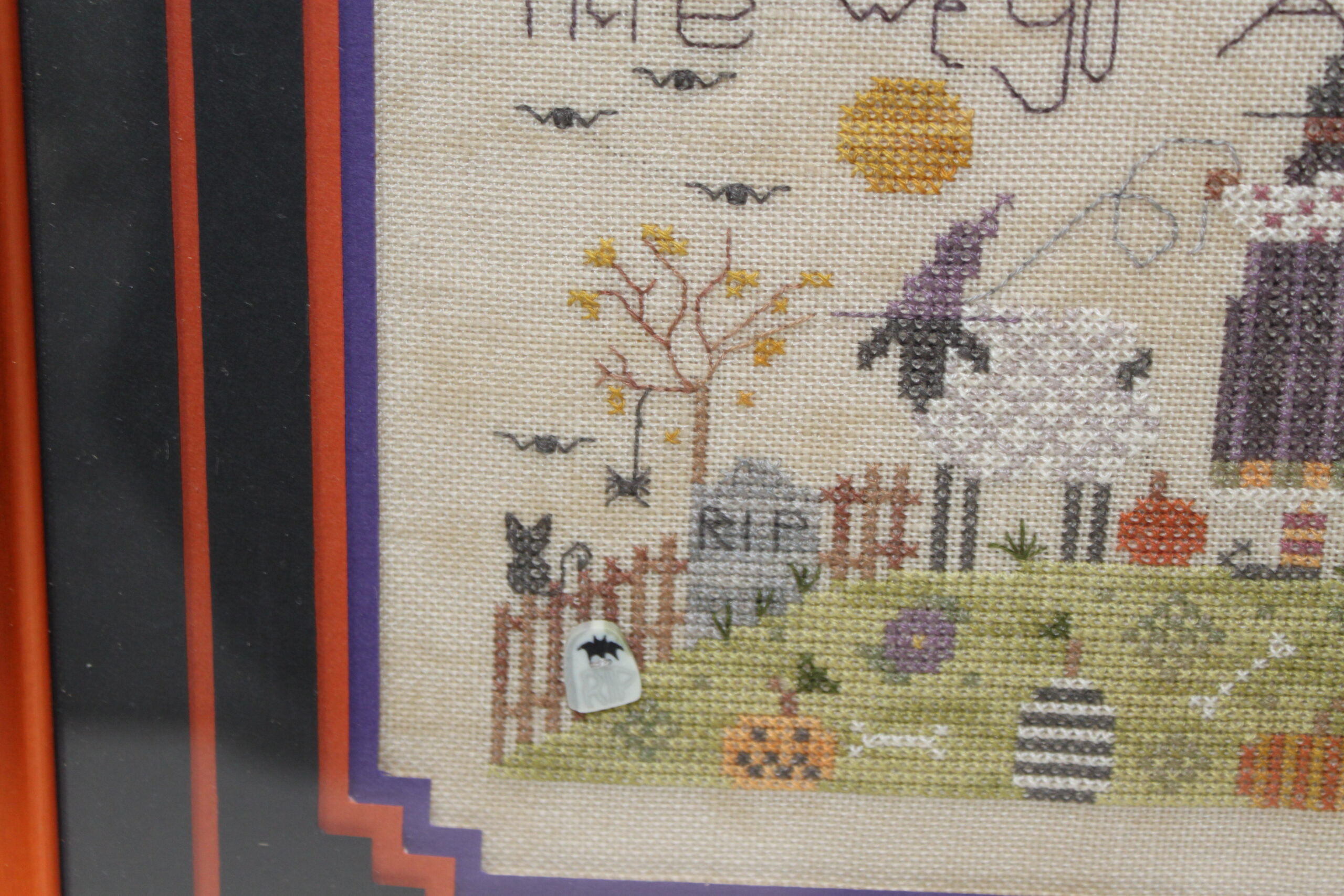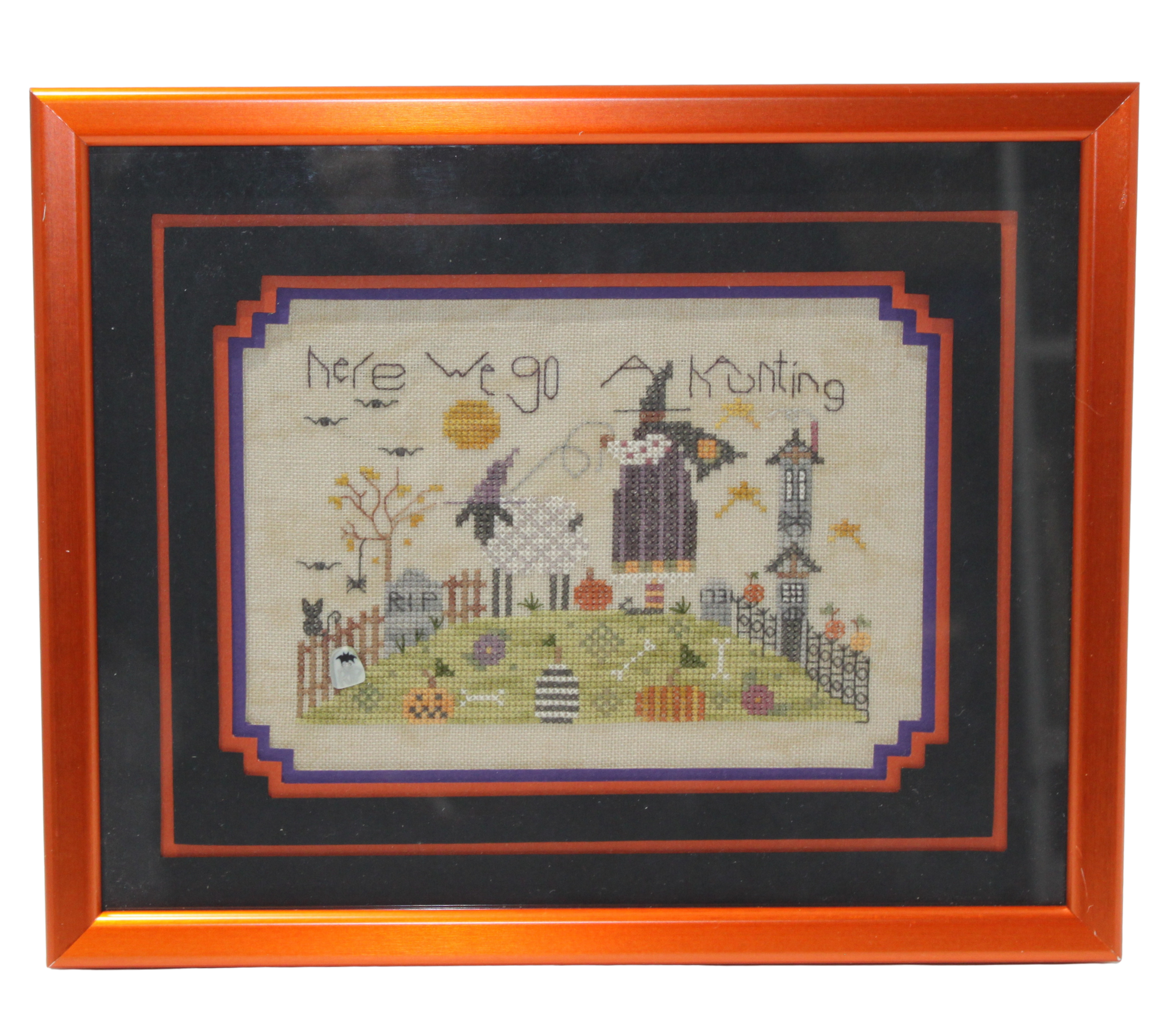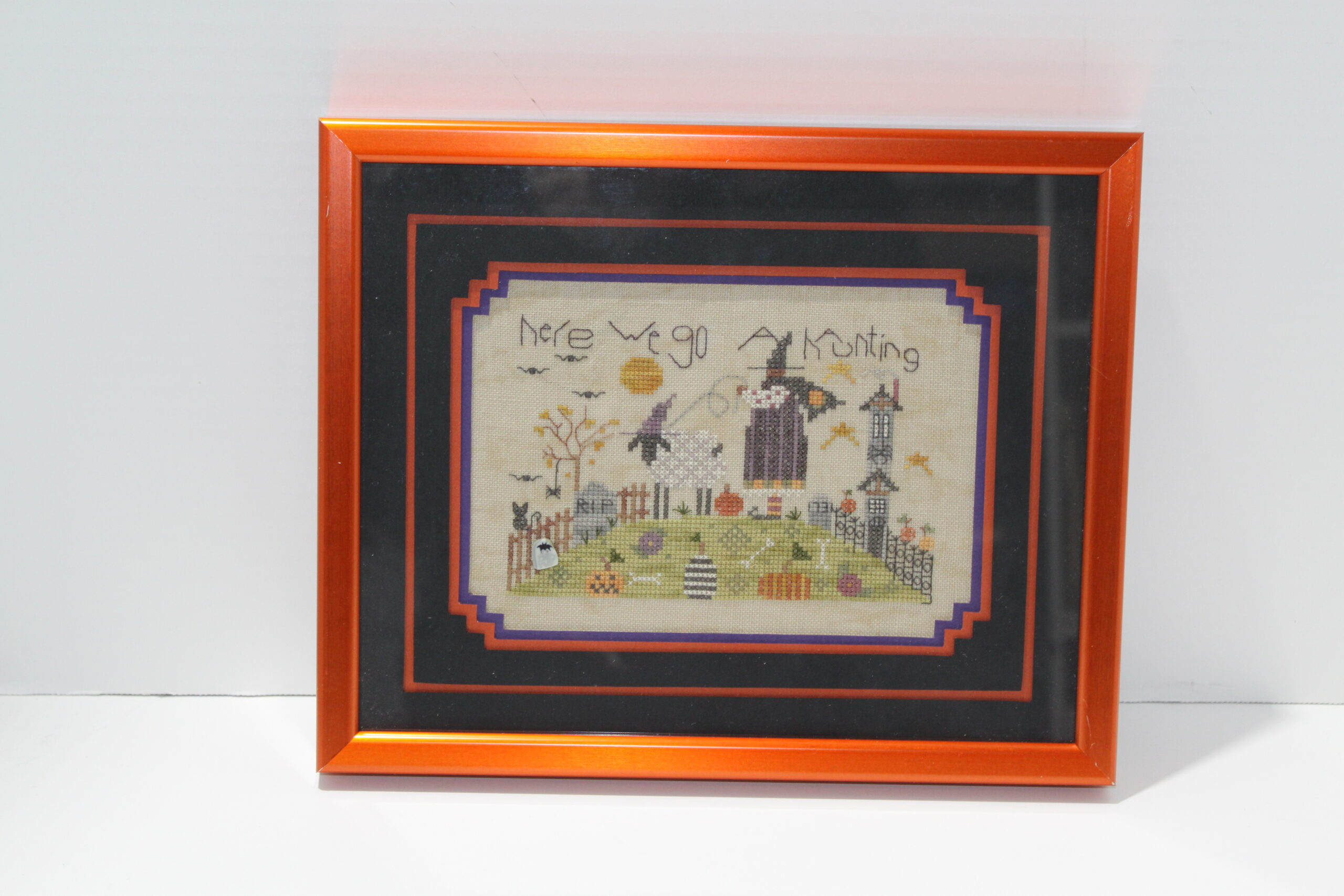 This fun hand stitched Halloween picture would make a nice accessory to any home.